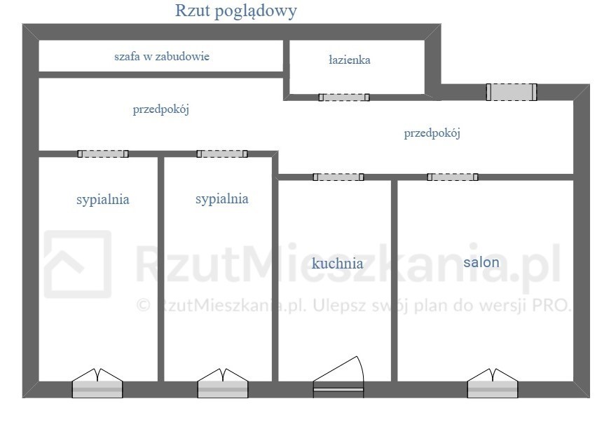 Powierzchnia mieszkania wynosi ponad  60 m2 i składa się z: