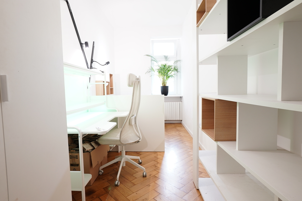 - 3 umeblowanych pokoi (w każdym pokoju znajduje się łóżko, biurko , szafa),
