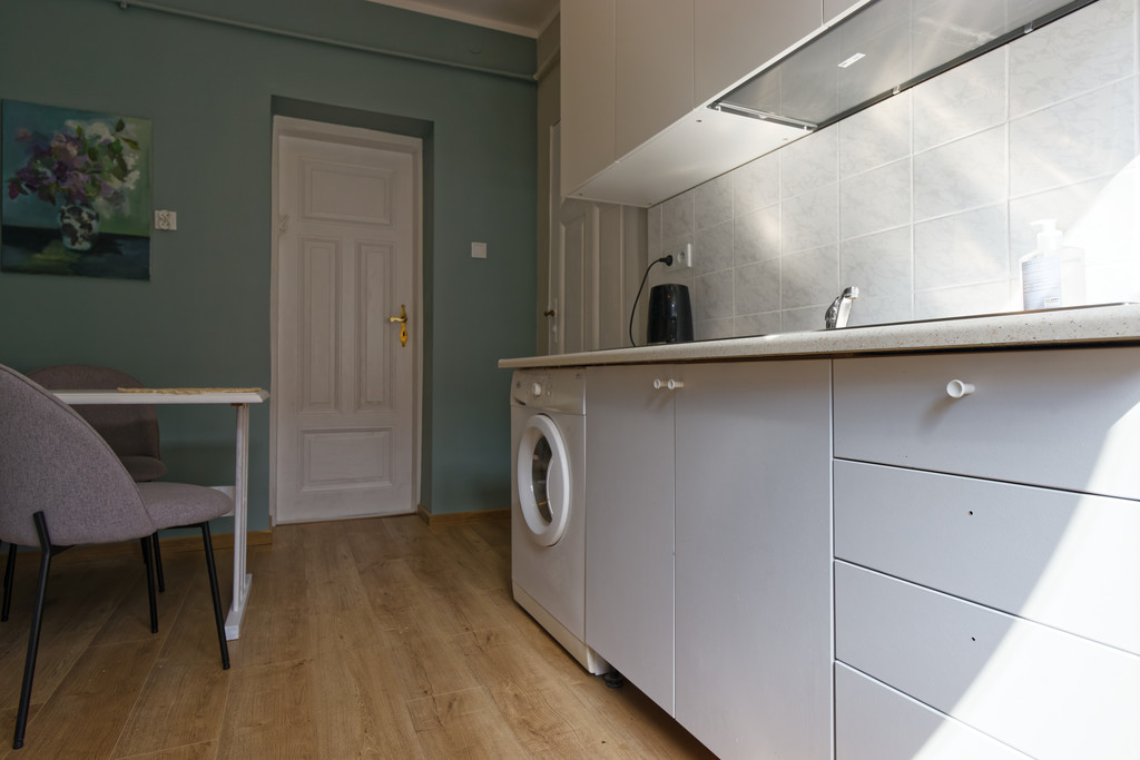 Dwa pokoje z osobną kuchnią, z możliwością przekształcenia na trzypokojowe z aneksem. Mieszkanie ciche, położone w podwórzu, zlokalizowane blisko parku i 15 minut od Jasnych Błoni.