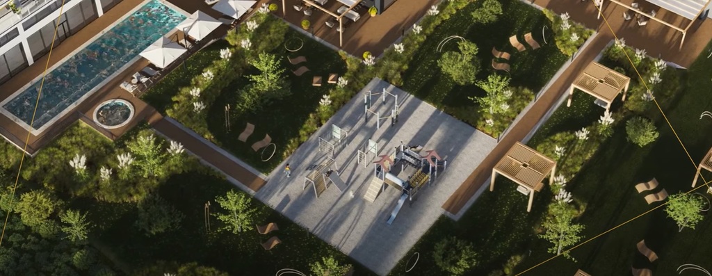 W inwestycji: aquapark, recepcja, restauracja, Spa & Wellness, basen, jacuzzi, sauna, fitness, kids room, sala konferencyjna, parking, garaż, winda.