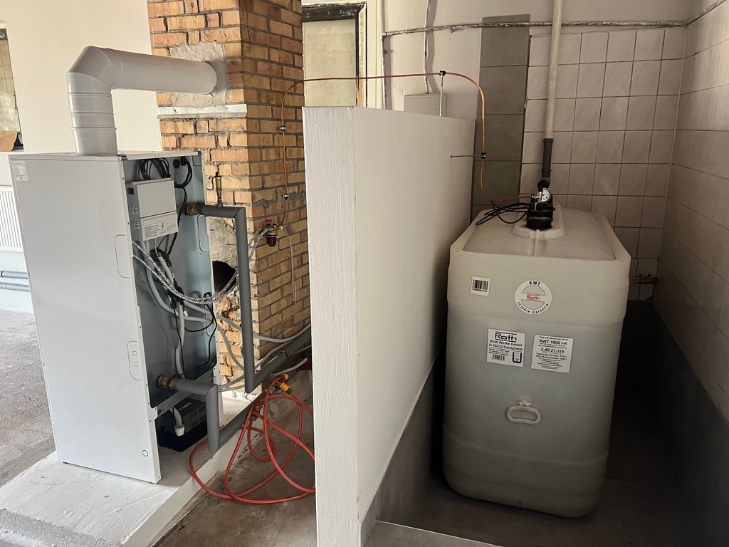 Ogrzewanie: Piec na olej opałowy, umieszczony w oddzielnym pomieszczeniu