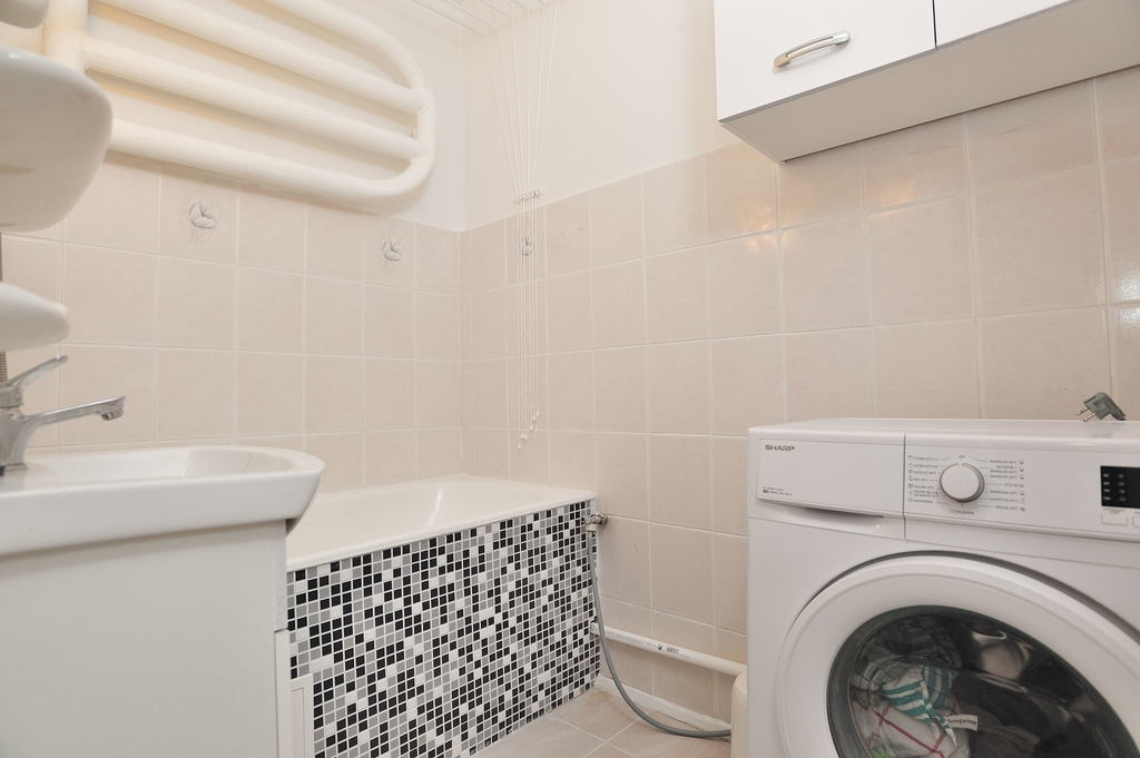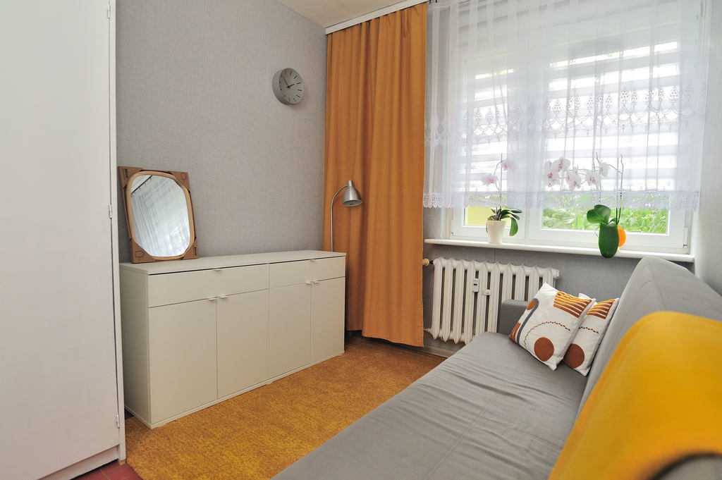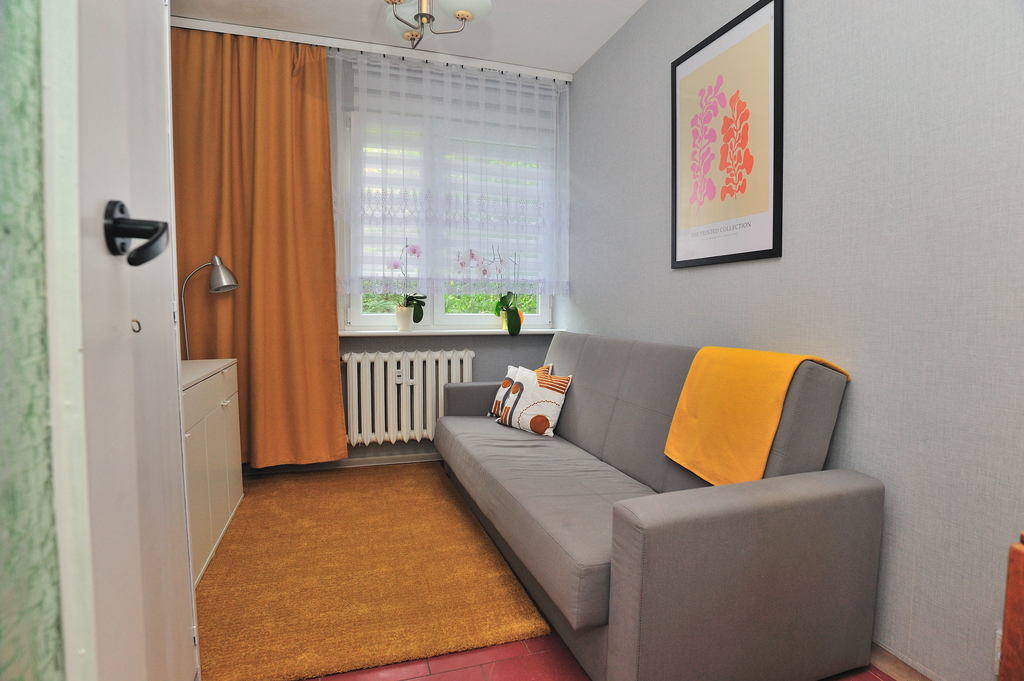 OPIS MIESZKANIA: Mieszkanie znajduje się w wieżowcu otoczonym zielenią drzew. Całkowita powierzchnia wynosi 48,97 m2. Jest umeblowane i wyposażone. Ogrzewanie i ciepła woda z sieci miejskiej. Mieszkanie składa się z dużego pokoju, mniejszej pokoju mogącego mieć funkcję sypialni lub pokoju dla dziecka, Dodatkowo znajduje się także kuchnia, łazienka z oddzielnym WC oraz przedpokój. W kuchni znajdują się nowe meble kuchenne, stół z 2 krzesłami oraz nowa kuchenka gazowa z elektrycznym piekarnikiem, czajnik i lodówka nowszego typu. W dużym pokoju są: rozkładana kanapa, meble pokojowe, 2 fotele, stolik pod telewizor, telewizor, ława oraz lampa stojąca. W małym pokoju znajduje się kanapa, niewielki stół oraz pojemna szafa i szafka. W łazience są: wanna z wiszącą suszarką na wyprane ubrania; umywalka z szafką, szafka wisząca oraz pralka. Oddzielne wc to dodatkowy atut. W przedpokoju znajduje się pojemna duża szafa, szafka na buty i wieszak.