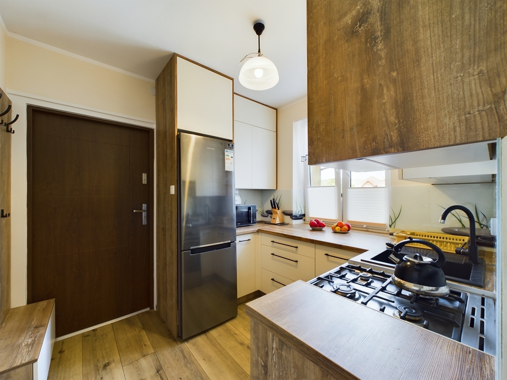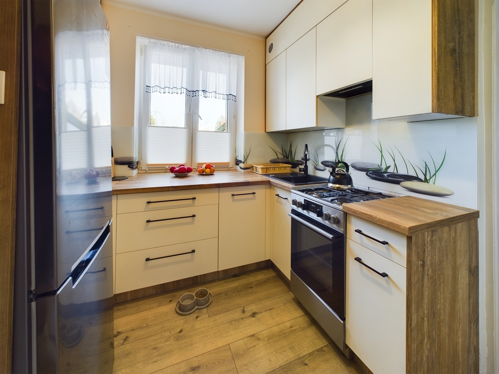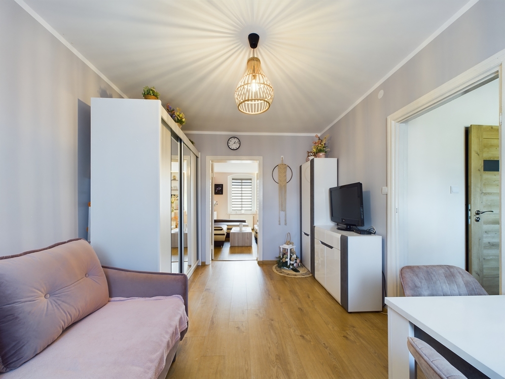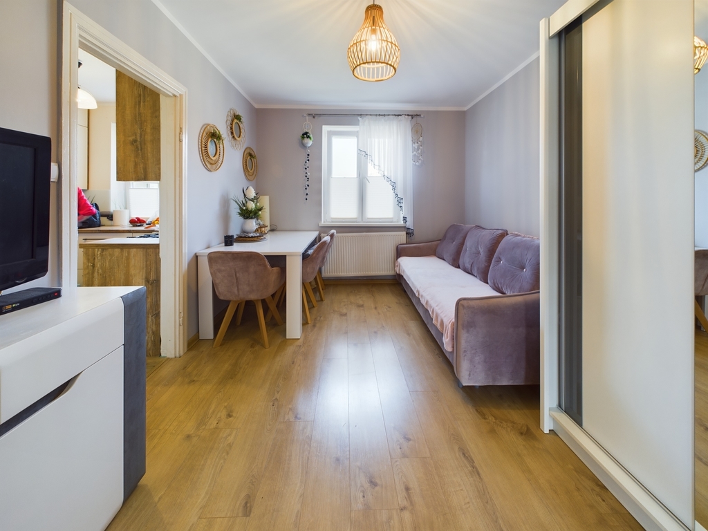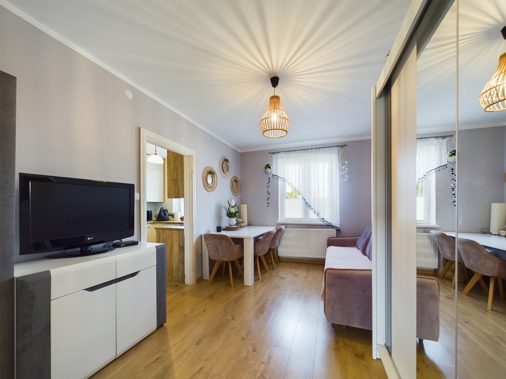 Mieszkanie znajduję się na parterze w domu czterorodzinnym. Budynek został ocieplony. Teren jest ogrodzony. Na posesji znajduję się Garaż blaszany oraz własna część wydzielonego podwórka.