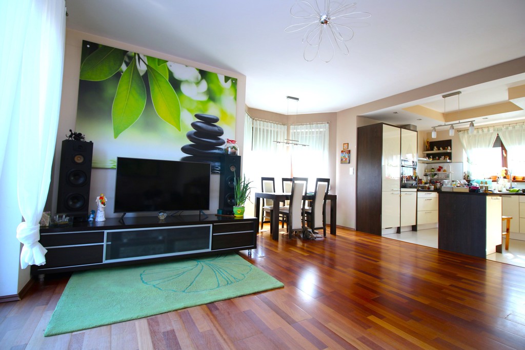 - przestronny salon z wyjściem na taras oraz otwartą kuchnią