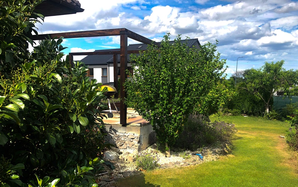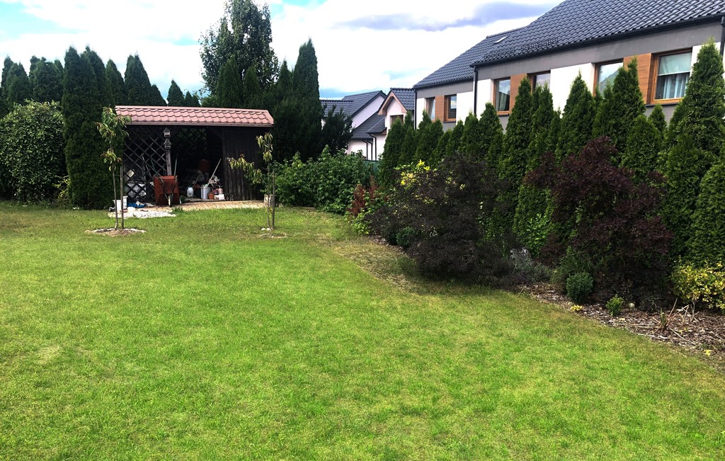 Nieruchomość położona jest na działce o powierzchni 875 m2 z licznymi nasadzeniami i drzewkami owocowymi. Ogród i taras położone są od wschodniej strony.