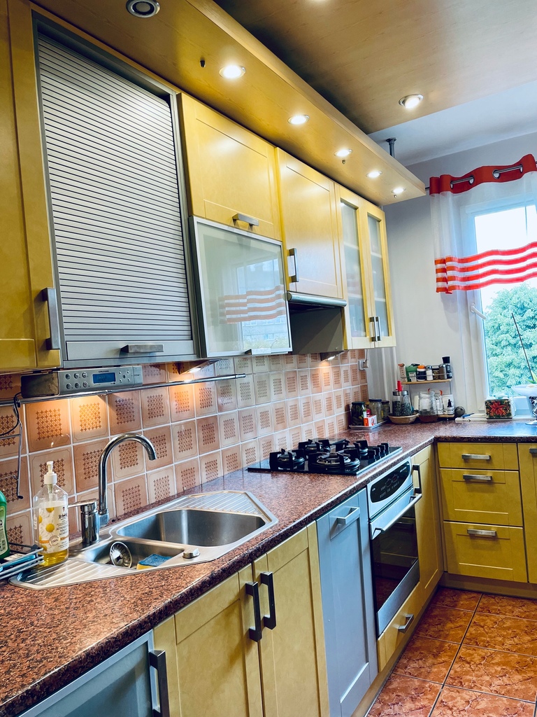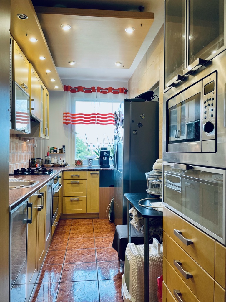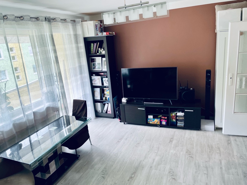 Nowoczesne, dwupokojowe mieszkanie w centrum Polic. Mieszkanie składa się z dużego pokoju dziennego, sypialni, łazienki i kuchni. Znajduje się na trzecim piętrze w czteropiętrowym budynku. W pokojach znajdują się duże okna, przestronny balkon co sprawia, ze mieszkanie jest przestronne i jasne. W kuchni znajdują się: w pełni wyposażona zabudowa, zmywarka, lodówka side by side i płyta gazowa.