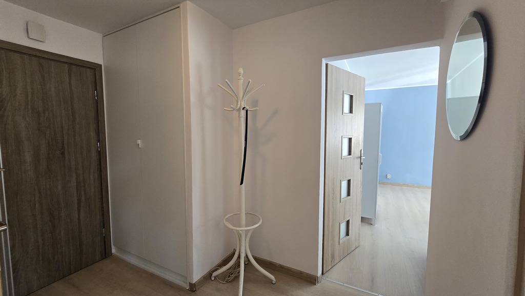 W pokojach i przedpokoju na podłodze panele, okna PCV, wymienione na antywłamaniowe drzwi zewnętrzne, nowe skrzydła drzwiowe wewnętrzne, nowa zabudowa meblowa w przedpokoju, podstawowe wyposażenie łazienki i kuchni.