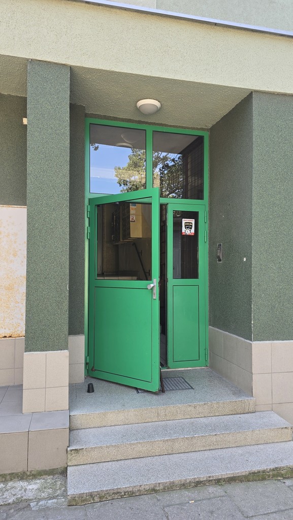 Budynek docieplony, część klatki schodowej oddzielona dodatkowymi drzwiami z domofonem.