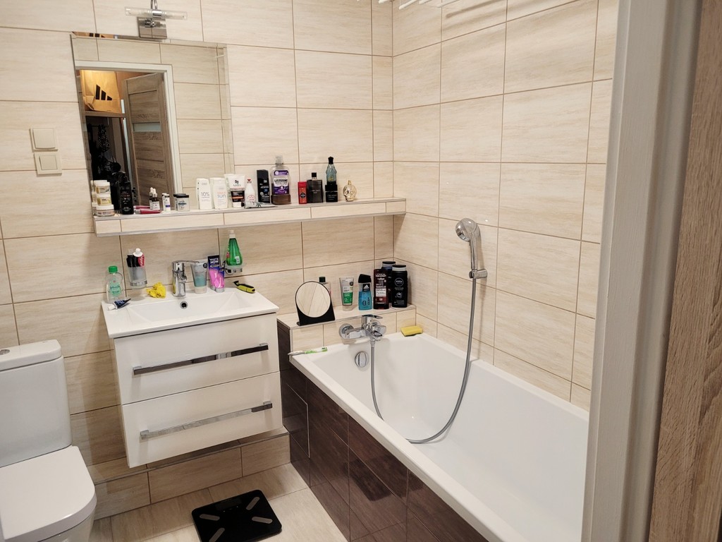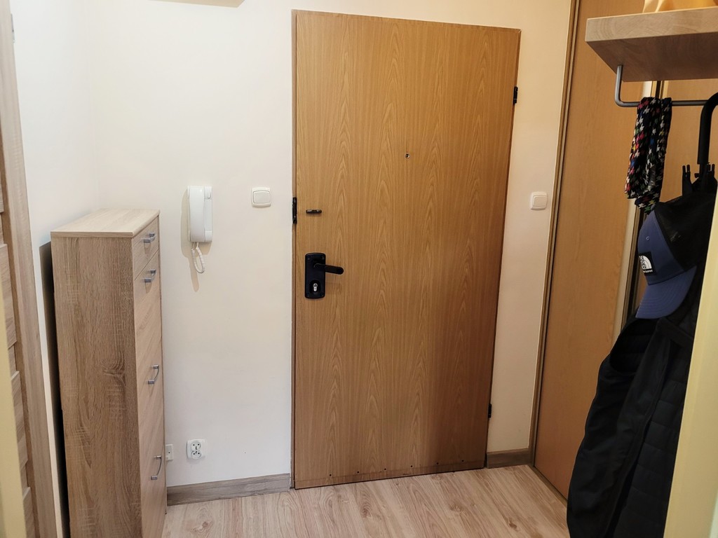 Na powierzchni kawalerki składa się: pokój, przestronny aneks kuchenny, duża łazienka z wanną oraz przedpokój z którego przy samym wejściu do mieszkania mamy oddzielną garderobę. Do dyspozycji jest również duży balkon z widokiem na tereny zielone. Do mieszkania przynależy spora piwnica, ok 10m2 (największa na klatce)