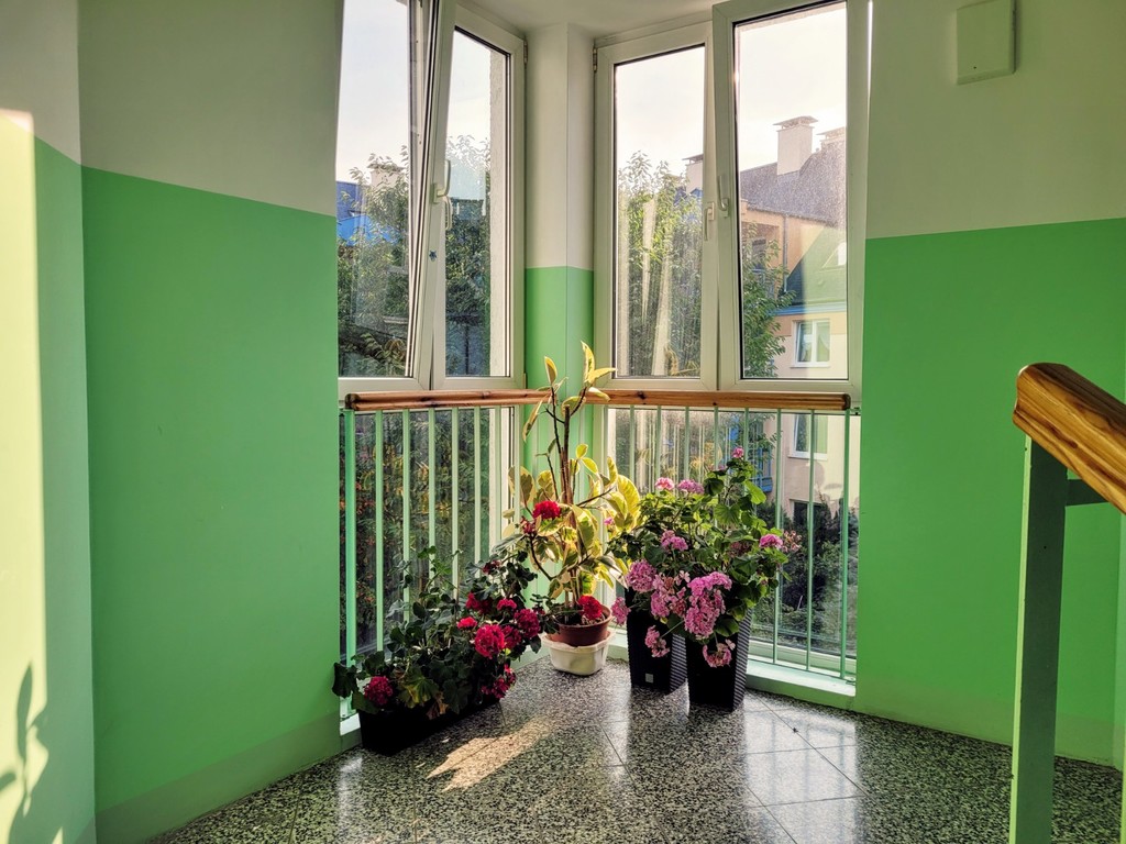 W mieszkaniu na podłodze jasne panele. Ściany gładzone i pomalowane jasnymi farbami. Mieszkanie słoneczne, środkowe, przez co uzyskujemy zwroty za ogrzewanie. Do zamieszkania od zaraz, bez zbędnych inwestycji.