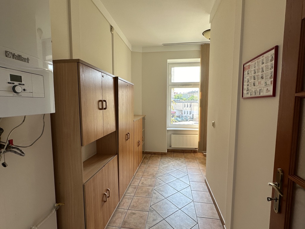 For sale residential-office-service premises located in the heart of Szczecin near Bogusław Promenade and Grunwaldzki Square, ul. Jagiellońska. The property is located on the 1st floor of a restored and well-kept tenement house with a representative staircase. Heating and water from a dual-circuit gas furnace. The usable area of the premises is approx. 82.30 m2 and consists of 3 rooms, kitchen, server room, bathroom in tiles and terracotta equipped with a shower and toilet. The premises consist of 5 rooms: - Corridor with an area of 7.45 m2 - Bathroom with an area of 2.65 m2 - Toilet with an area of 1.70 m2 - Kitchen-social room with an area of 10.35 m2 - First office room from the street with an area of 23.56 m2, separate rooms for server rooms. - Second office room with an area of 26.14 m2, - Third office room with an area of 10.65 m2 Rent with advances for cold water, sewage, cleaning of the staircase is approx. 250LPLN. PVC windows, smooth and painted walls. The building is wired, internet, TV. We recommend it due to its very good location, layout and standard - ideal premises for an office, law firm. Commercial and office street Jagiellońska 90-86. We invite you to the presentations.