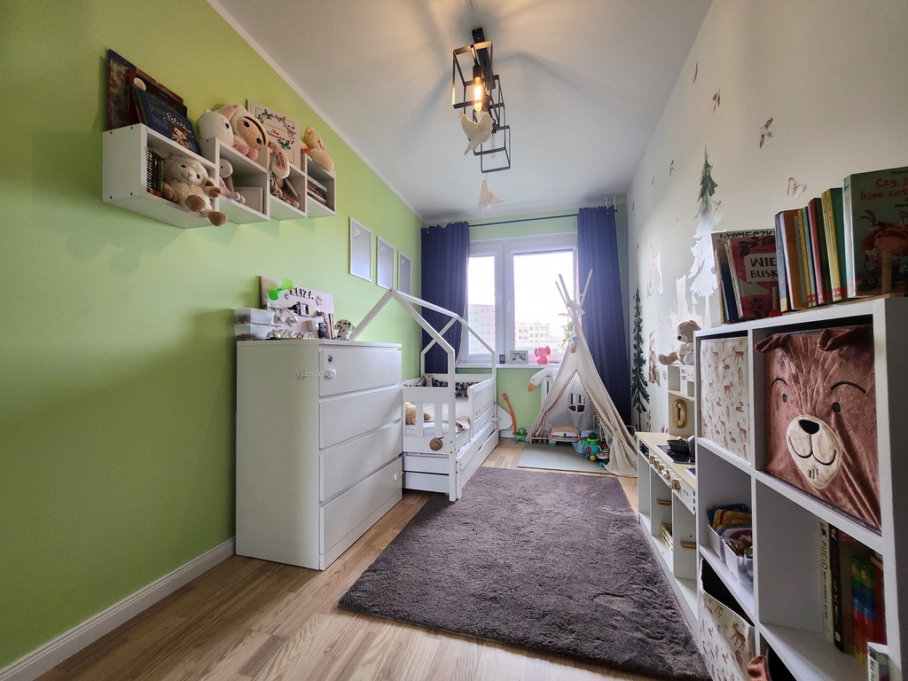 Na powierzchnię nieruchomości składają się salon o pow. ok. 16 m2 z wyjściem na przyjemnie zaaranżowany balkon, dwie sypialnie o pow. ok. 10,5 i 9 m2, widna kuchnia z meblami w zabudowie, łazienka, osobne WC oraz korytarz.