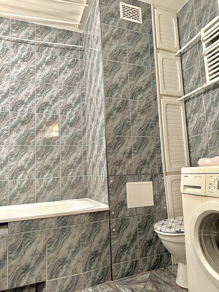 - Łazienka – wykafelkowana, wyposażona w wannę.