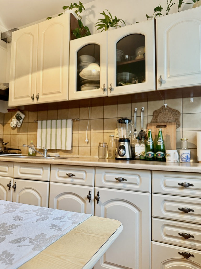 - Kuchnia – w zabudowie, jasna, ustawna, z miejscem na stół. Ekspozycja na południe.