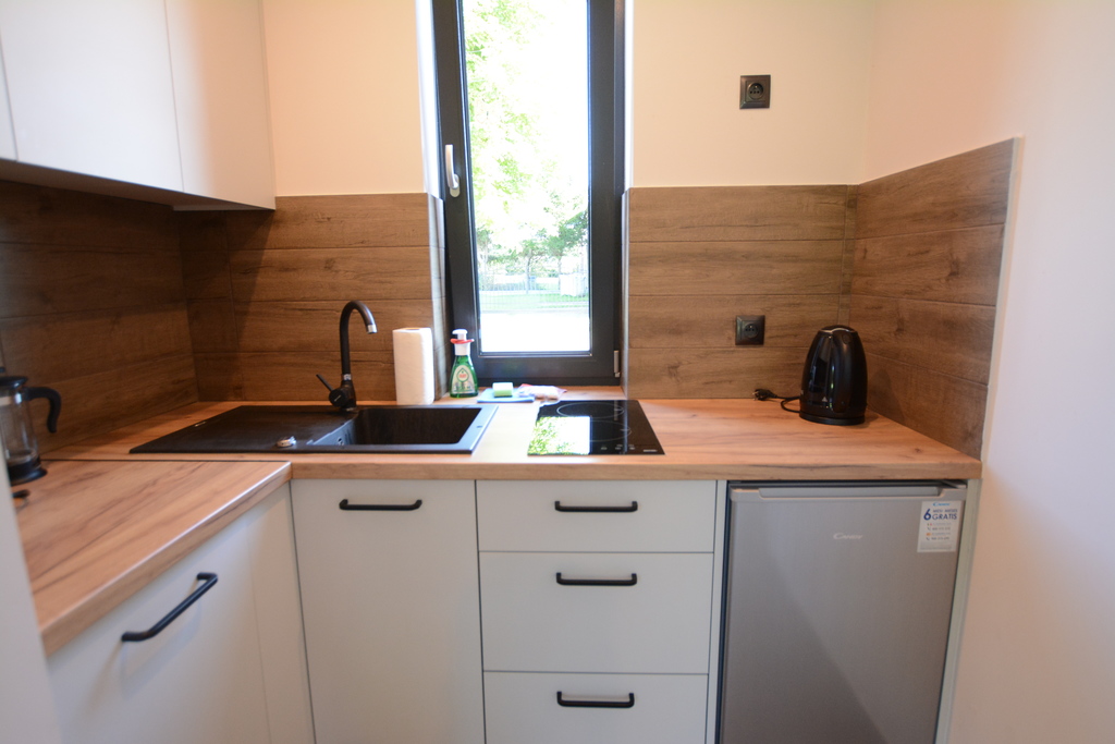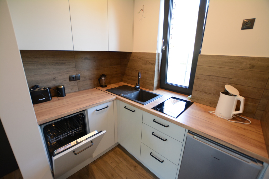 - kuchnia meble w stałej zabudowie na wyposażeniu między innymi ( zmywarka, lodówka, płyta indukcyjna, czajnik )