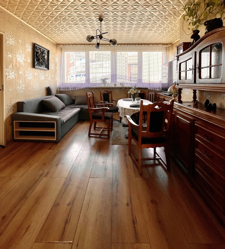 - Wymaga remontu, co daje możliwość dostosowania wnętrza do własnych preferencji i stylu.