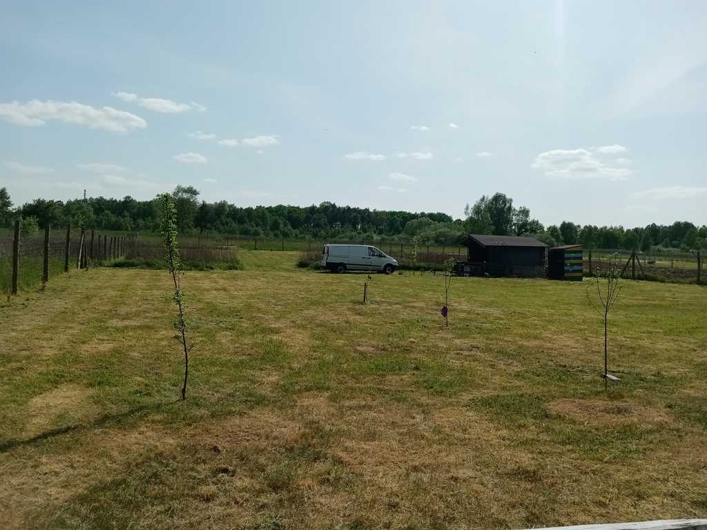 Na terenie działki znajduje się drewniany domek o powierzchni około 10 m² z tarasem, idealny do wypoczynku, oraz szopka narzędziowa..