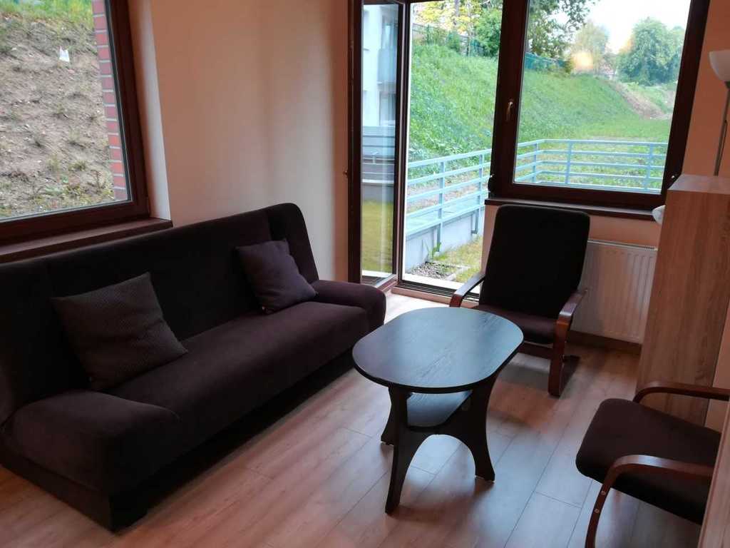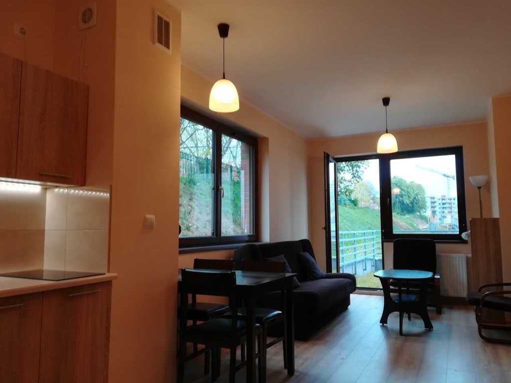 Prezentujemy mieszkanie w nowoczesnym budynku. Położone jest na I pietrze, ale wyjście na ogród jest z tyłu budynku z poziomu zero. Do mieszkania przynależy piwnica o powierzchni 2 m2 i ogród 20 m2. Ogród jest nad garażami, a wejście jest z salonu i z sypialni. Mieszkanie jest w pełni umeblowane i wyposażone. Czynsz najmu wynosi 2.400,00 zł + 450,00 zł ( w tym zaliczka na ogrzewanie i wodę) + prąd i internet (UPC), kaucja 3.000,00 zł.