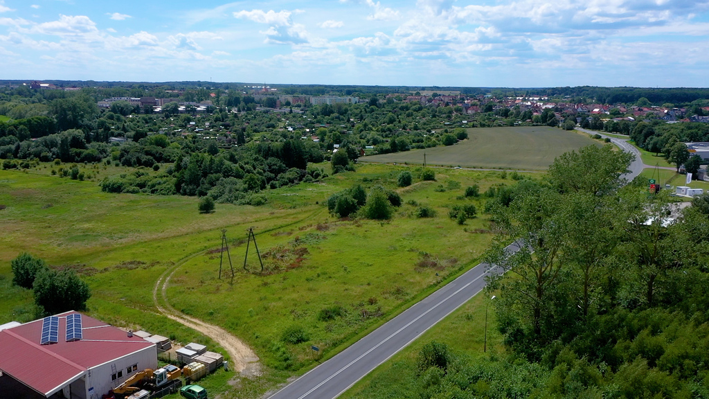 Działka usytuowana przy głównej arterii ruchu w Nowogardzie, bezpośrednio vis a vis Retail Parku oraz stacji paliw, w sąsiedztwie hali produkcyjnej.