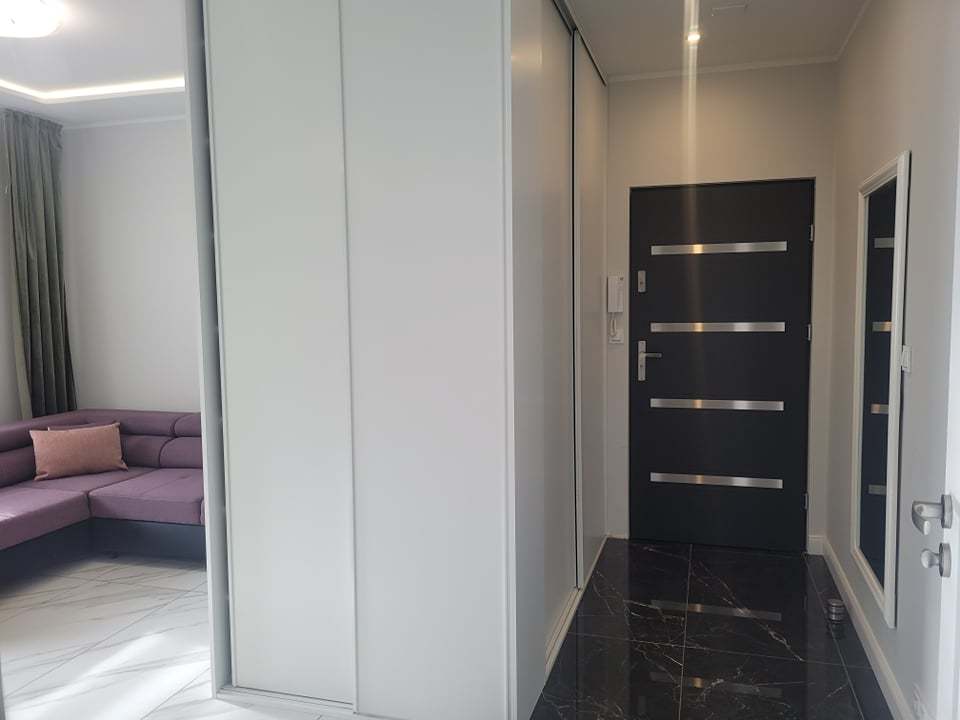 Mieszkanie składa się z dużego pokoju dziennego z aneksem kuchennym z meblami w zabudowie, przedpokoju oraz łazienki z wc. Do dyspozycji najemcy zostaje wyposażenie kuchni (zabudowa wraz z kuchenką, lodówką, zmywarką i mikrofalówką), wyposażenie łazienki , w tym pralka. Ogrzewanie mieszkania oraz ciepła woda podgrzewana z piec gazowego.