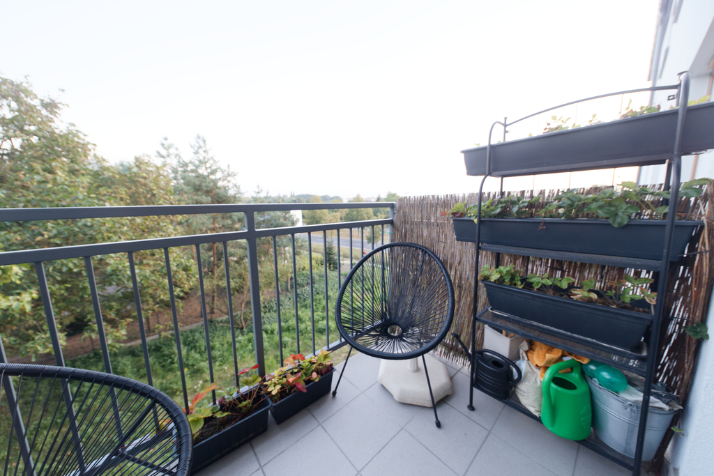 Dodatkowym atutem jest balkon z pięknym widokiem na panoramę miasta i otaczającą zieleń.