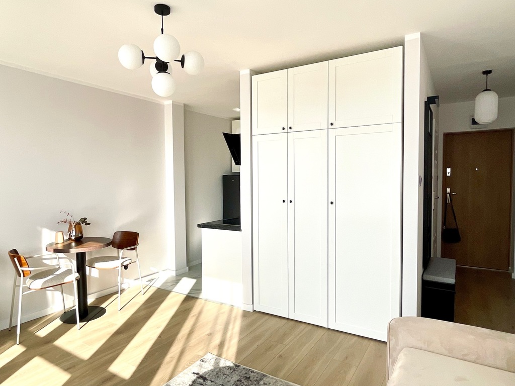 Na sprzedaż jasna kawalerka o powierzchni 25,8 m² z balkonem francuskim i ciekawym widokiem, położona w zielonej części Szczecina na osiedlu Bolinko.