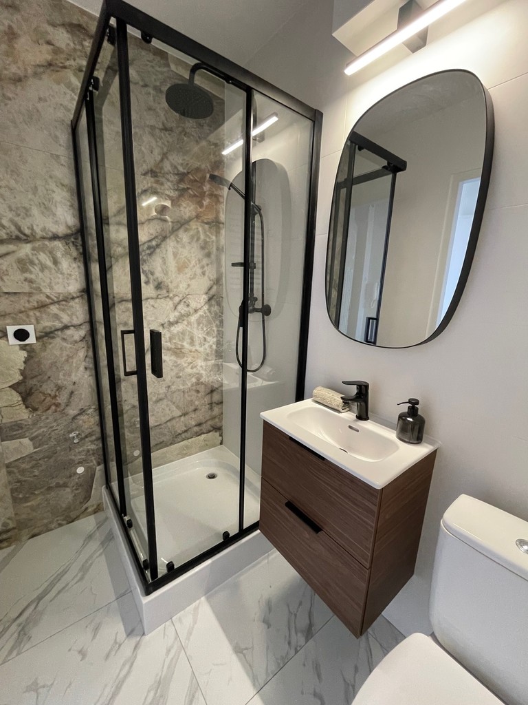 Łazienka (2,7 m²): komfortowa, z nowymi kafelkami, prysznicem i WC.