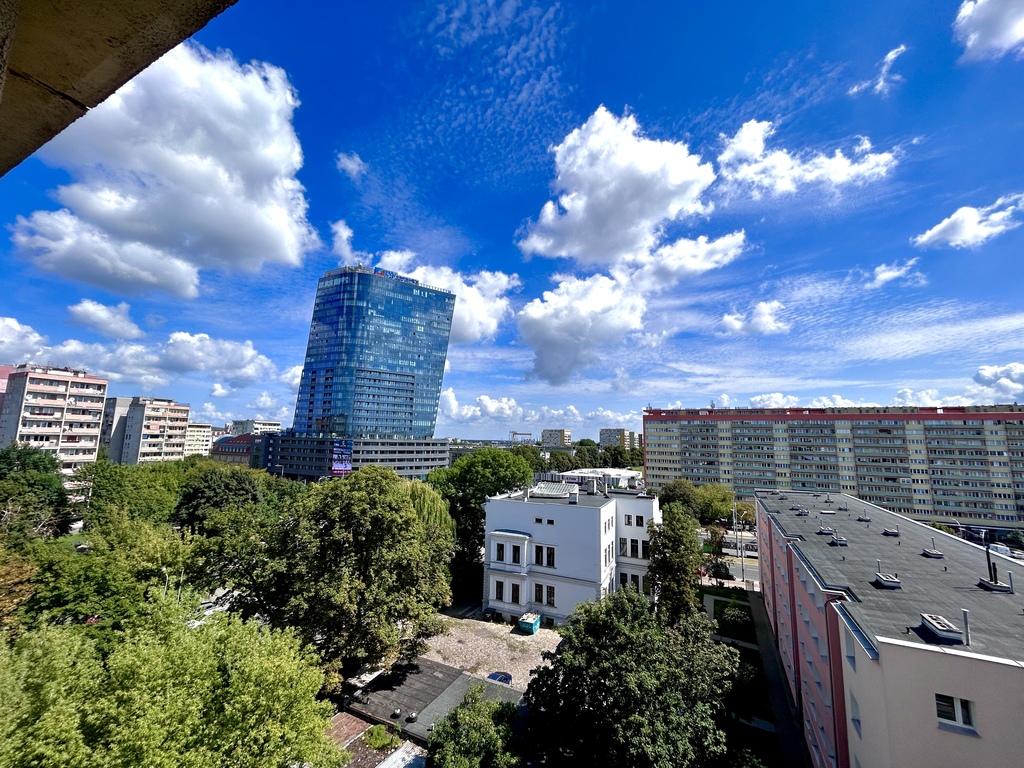 Widok z okien na Hanza Tower, Filharmonię, zieleń - bardzo duża przestrzeń = prywatność.