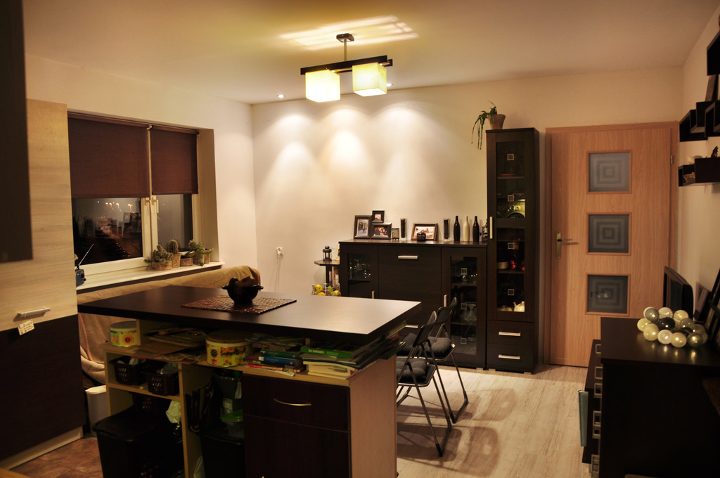 - pokój dzienny z "otwartą" na pokój kuchnią,
