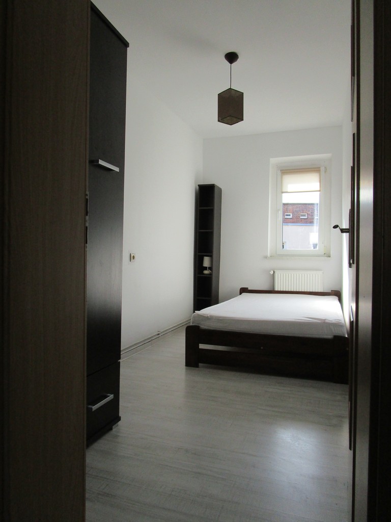 Do wynajęcia 2 pokojowe mieszkanie (z dodatkowym pomieszczeniem np. do "pracy"), położone na 2 piętrze niskiego bloku z cegły na Pogodnie.