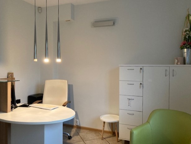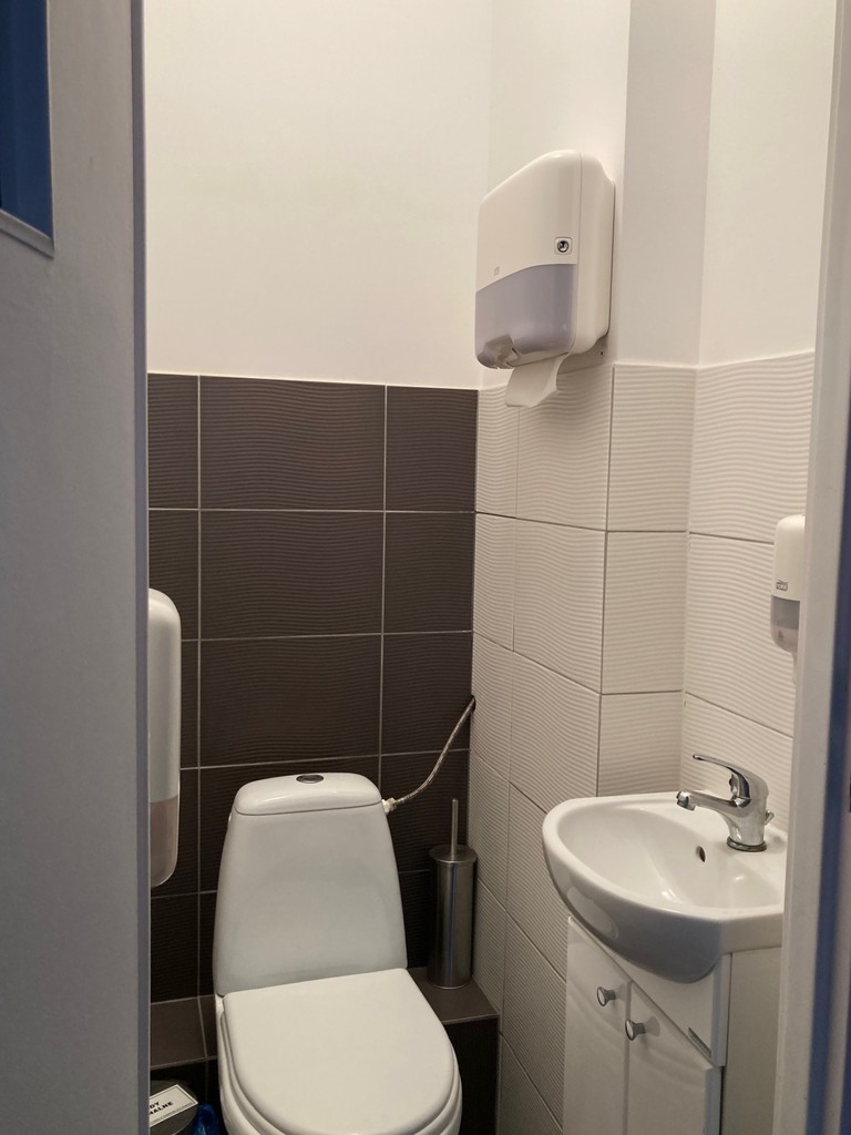 - łazienki z WC dla pracowników i WC dla klientów/pacjentów (na rzucie zaznaczone jako jedno pomieszczenie)