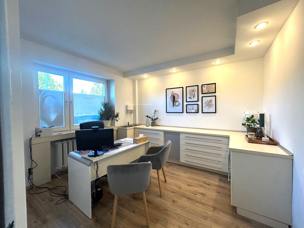 Do wynajęcia lokal (83,10 m2) położony na parterze niskiego bloku z 1990 r. , nadający się pod działalność medyczną, kosmetyczną, biurową (częściowo umeblowany i wyposażony)