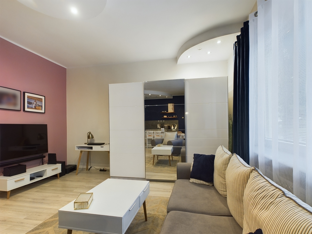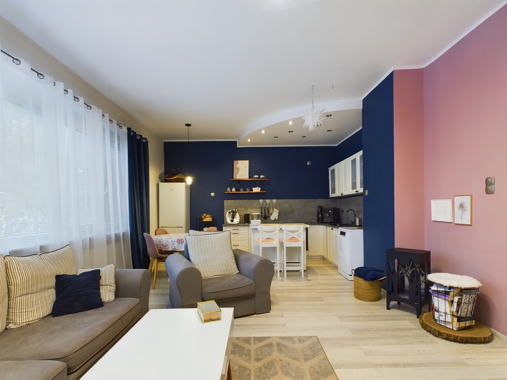 - Jasny przestronny salon z aneksem kuchennym o powierzchni 35,38 m2