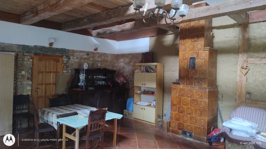 Oferujemy na sprzedaż parterowy dom z poddaszem użytkowym o powierzchni 216 m2 na wsi, z budynkiem gospodarczym / ponad 100 m2/ na działce 1100m2.Dom zlokalizowany w miejscowości w okolicach Dobrzan we wsi Sierakowo, woj. zachodniopomorskie. Nieruchomość graniczy z działką dzierżawioną od gminy o pow.9400m2, z możliwością kupienia. Dom w stanie do remontu i modernizacji Woda z sieci, prąd, własne szambo. Ogrzewanie – piece kaflowe , kominek z nawiewem. Na parterze 3 pokoje o pow.22 , 24 i 30 m2 ,salon z piecem 49 m2, kuchnia 16 m2 , łazienka z wc ok.12 m2. Na poddaszu salon 35 m2, dwie garderoby, pomieszczenie sanitarne z wc z możliwością zainstalowania wanny.