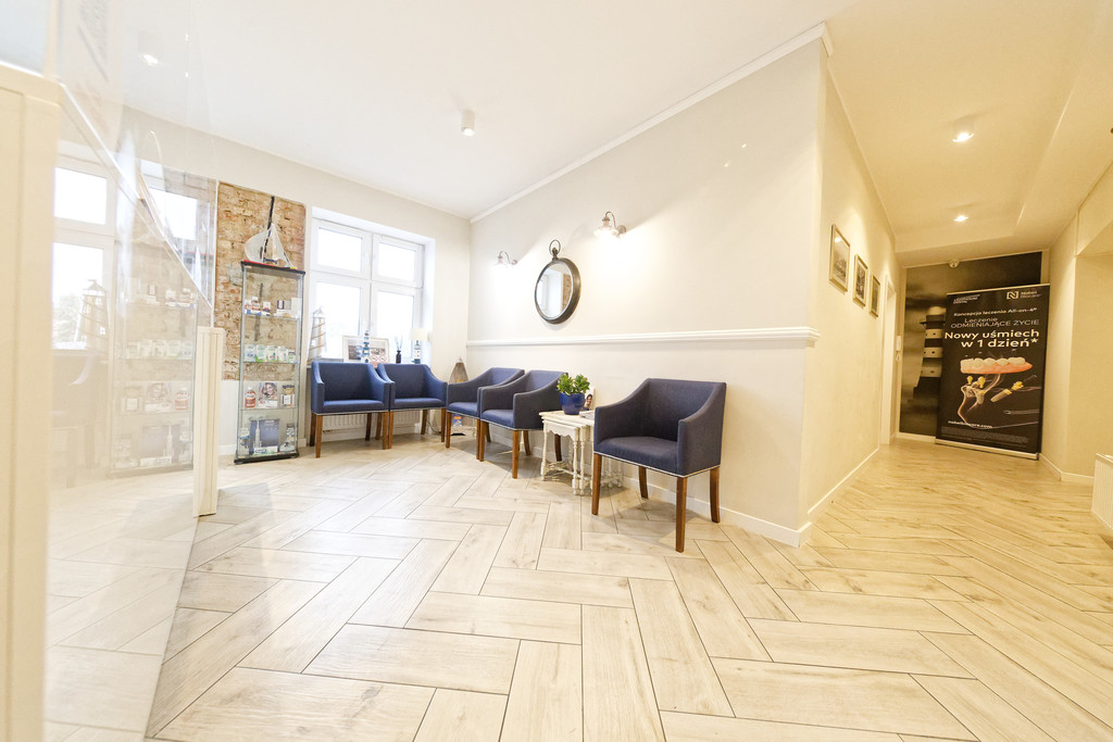 Lokal ma 110m2. Znajdują się tu 3 gabinety, sterylizatornia, gabinet RTG, dwie łazienki i duża rejestracja na dwa stanowiska.