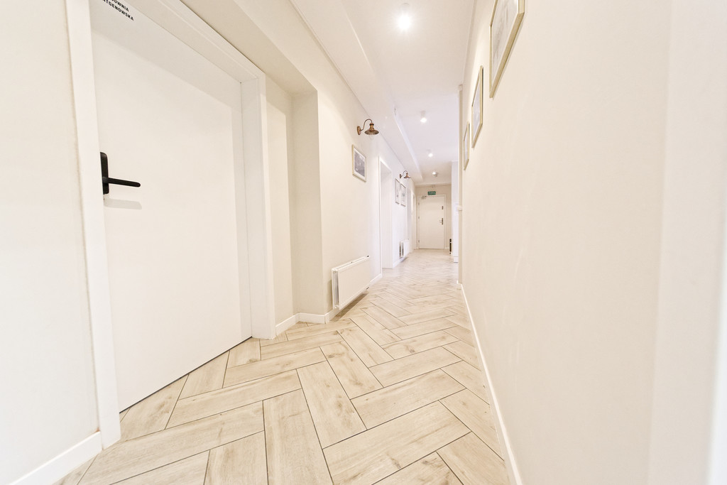 Gabinety są ładnie wykończone, wszystkie pomieszczenia są z oknami. Lokal znajduje się na 2 pietrze