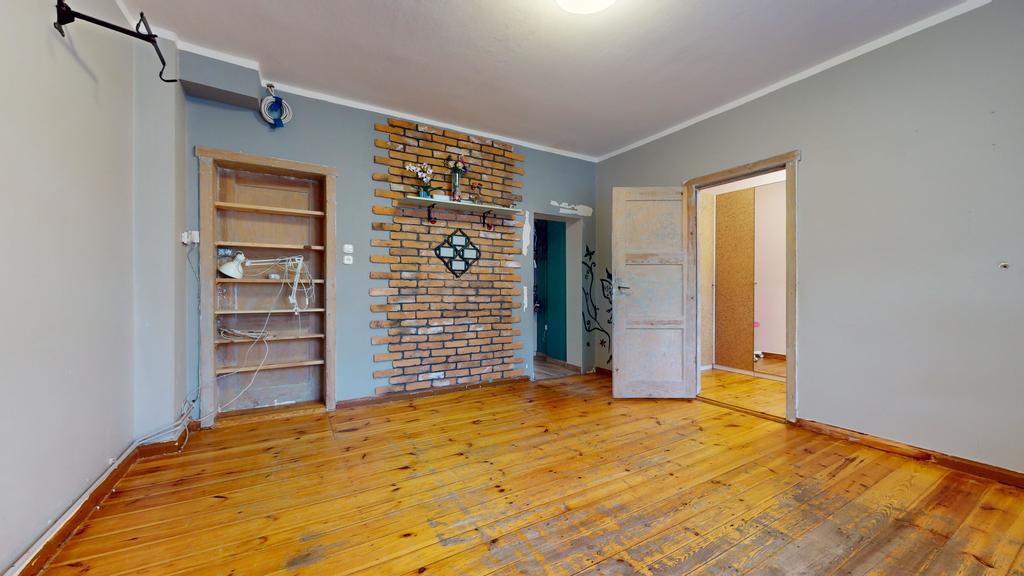 W pokojach (wejście do pokoi - większy pokój przechodni) zachowane oryginalne przedwojenne drzwi i podłogi. Ściany gładkie, malowane.