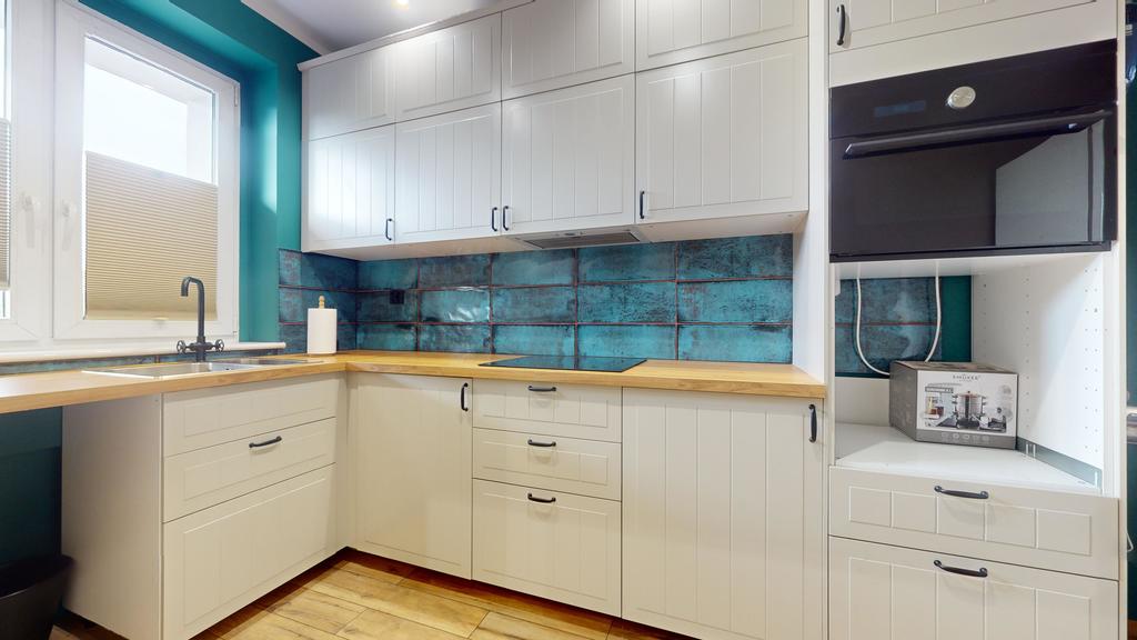 Łazienka i kuchnia są po remoncie, wykończone glazurą i terakotą, kuchnia zabudowana meblami na wymiar z częściowym wyposażeniem (bez zmywarki i piekarnika). Instalacja elektryczna w kuchni i łazience wymieniona na miedzianą, do pokoi wyprowadzone przewody elektryczne umożliwiające dalszą zmianę instalacji.