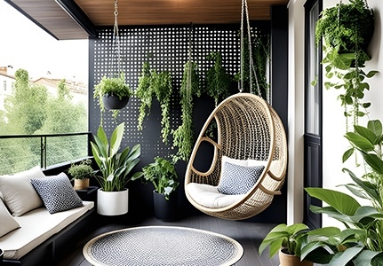 Balkon typu loggia zapewnia intymność, a zarazem przestrzenne widoki.