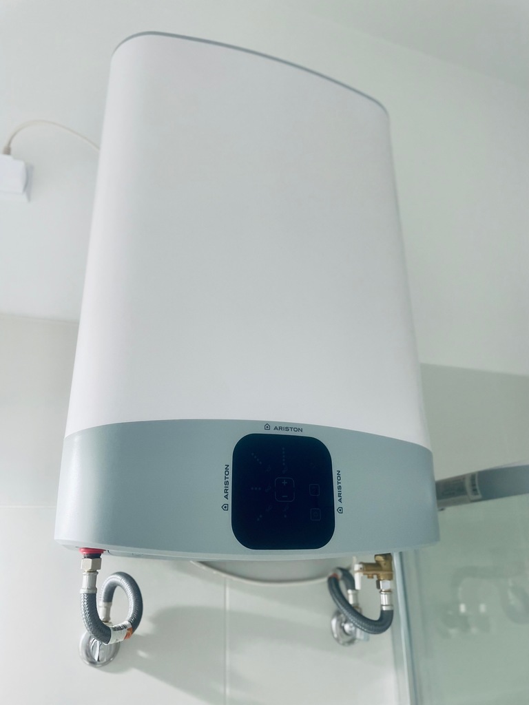 Ogrzewanie elektryczne , ciepła woda z nowoczesnego bojlera elektrycznego.