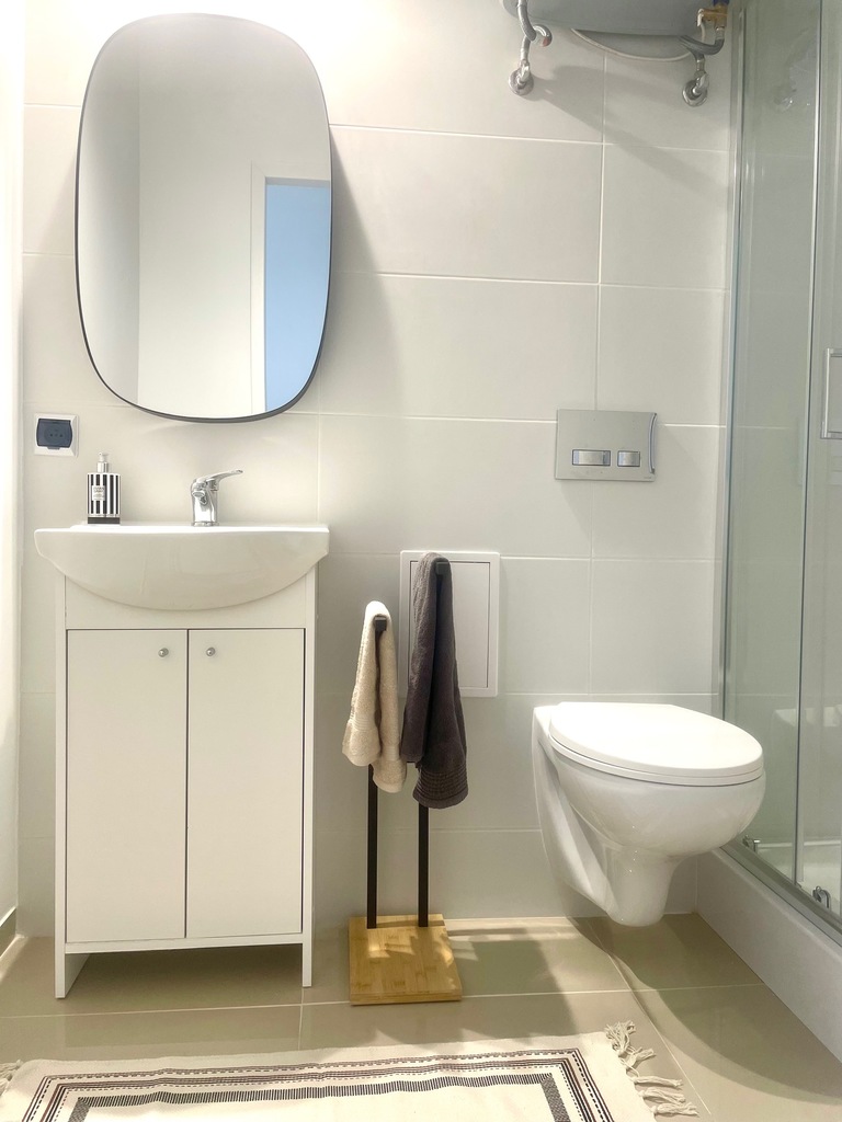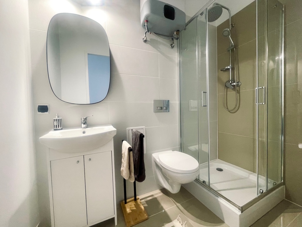 W łazience prysznic ,wc , miejsce na pralkę.
