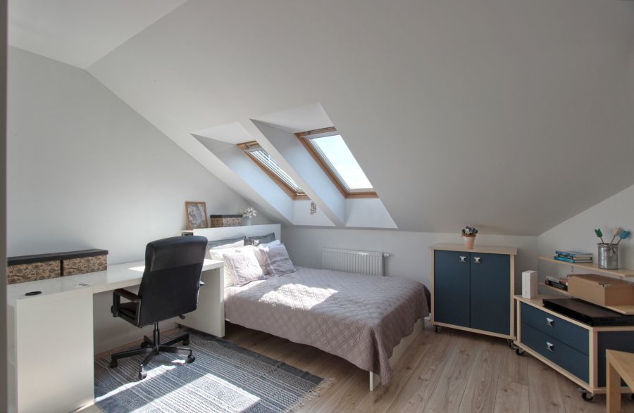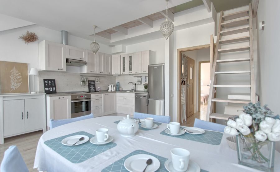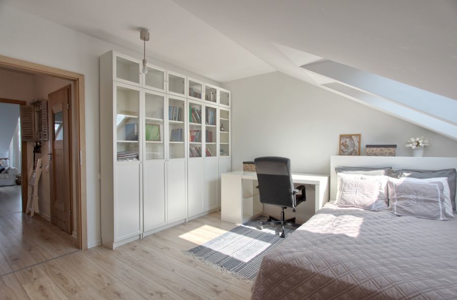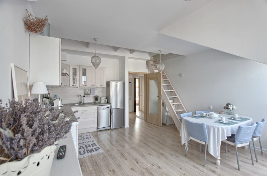 W mieszkanie znajduje się również antresola nad częścią salonu, która może służyć jako mały gabinet.