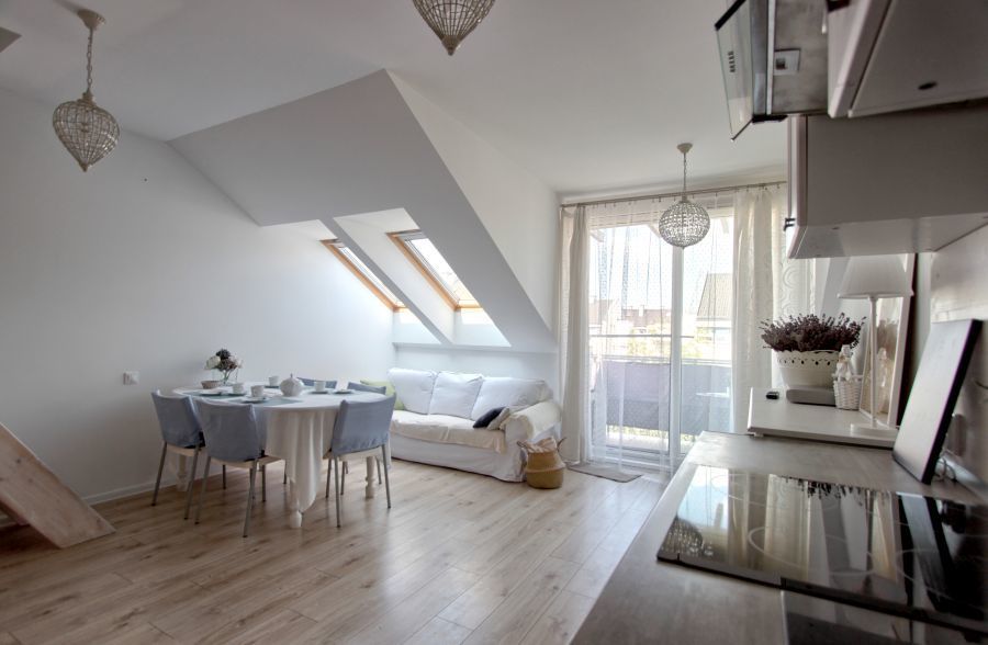 Mieszkanie w pełni umeblowane i wyposażone w sprzęt AGD ( lodówka z zamrażarką, płyta indukcyjna, zmywarka, okap, piekarnik)