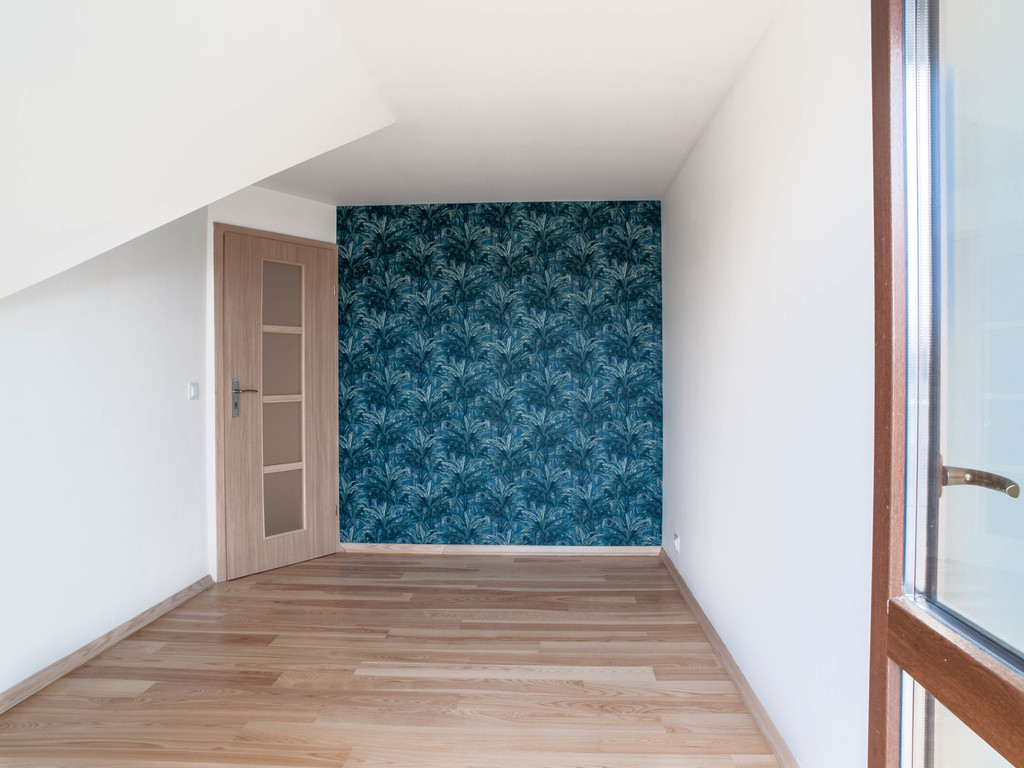 Poddasze zagospodarowane na garderobę z oknem.
