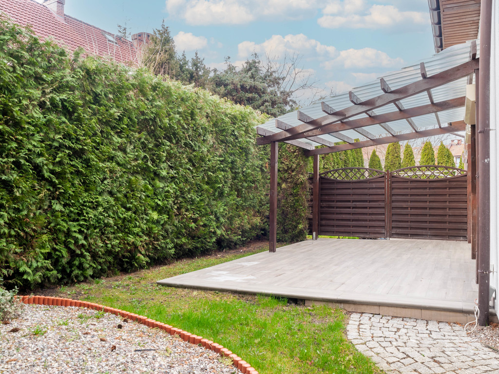 Z salonu jest wyjście na zadaszony taras od strony południowo zachodniej z miejscem na grilla.