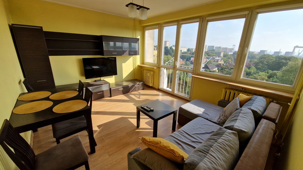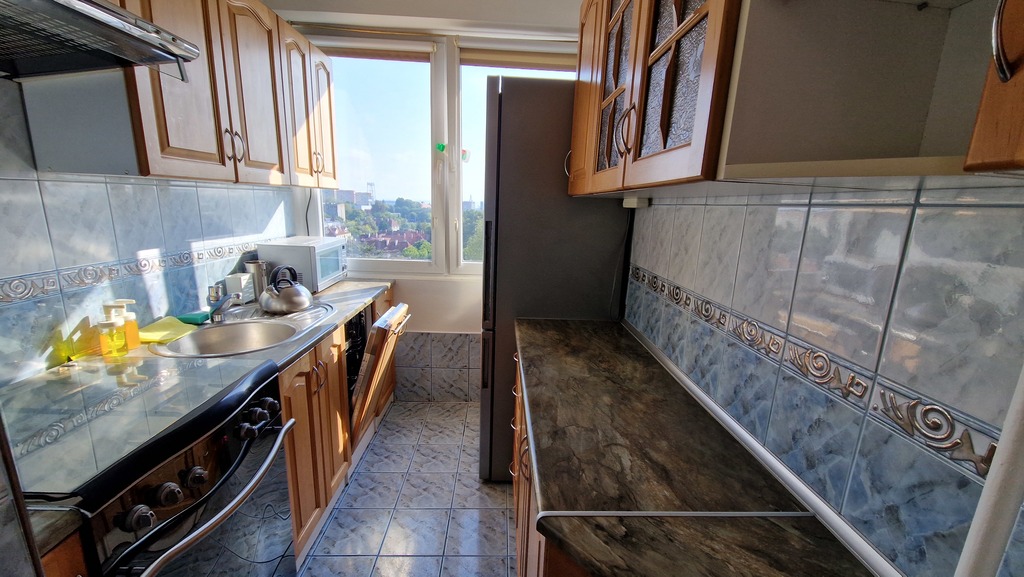 Na sprzedaż 2 pokojowe mieszkanie o powierzchni 38m2 położone na ul. Wilczej na Szczecińskim Niebuszewie. Bardzo dobra komunikacja z Centrum miasta oraz z północnymi dzielnicami. Budynek z lat 70ych na wzniesieniu dzięki czemu z mieszkania mamy piękny widok na panoramę miasta. Lokal znajduje się na 6 piętrze z jedenastu i składa się z dwóch oddzielnych pokoi o powierzchni 15m2 i 9m2, oddzielnej kuchni 4,7m2, łazienki 4m2 a wszystko połączone korytarzem 5,5m2 z dużą zabudowaną szafą. W pokojach na podłodze panele a w kuchni i łazience płytki. Zabudowa kuchni wraz ze sprzętem AGD pozostaje w cenie mieszkania. Umeblowanie widoczne na zdjęciach może zostać lub być usunięte (w zależności od życzenia kupującego). W budynku ogrzewanie i woda ciepła z sieci miejskiej, gaz tylko do kuchenki. Czynsz do wspólnoty 427,88 (z zaliczką na ogrzewanie ale bez zaliczek na wodę - zależy od ilości osób). Mieszkanie jest bardzo słoneczne (wschód) dzięki dużym oknom PVC. Zadbana klatka schodowa z dwiema windami. Do lokalu przynależy piwnica około 4m2. Istnieje opcja wynajęcia garażu blisko budynku.