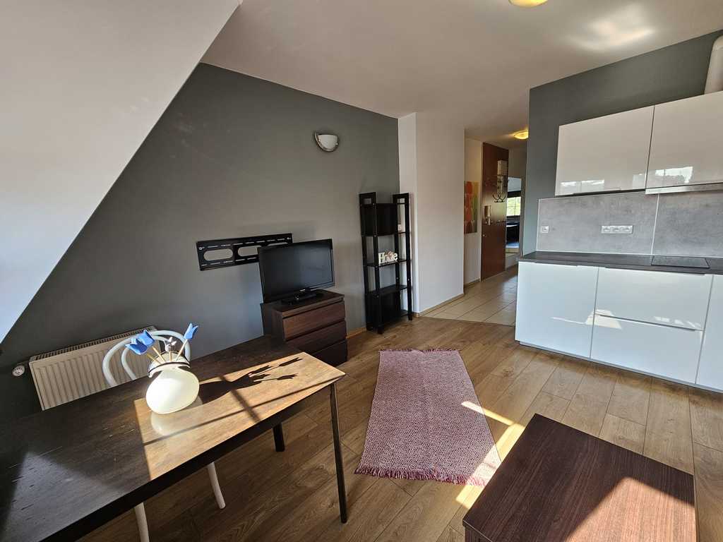 Apartament składa się z dwóch pokoi, jeden z aneksem kuchennym z jadalnią oraz łazienki z wc. Mieszkanie bez czynszowe.