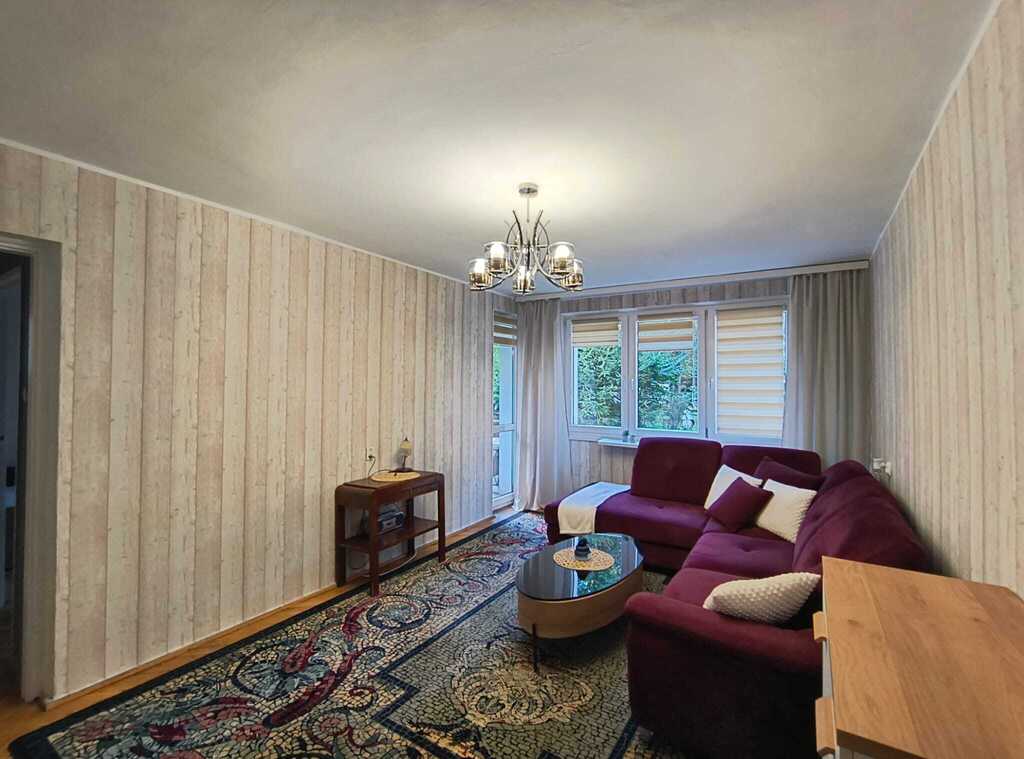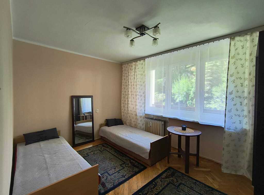 W salonie znajduje się wygodny narożnik a w sypialni dwa łóżka pojedyncze które można połączyć ze sobą. W sypialni oraz w przedpokoju duże, pojemne szafy. Z salonu wyjście na duży, ładny i słoneczny balkon. Widok na zieleń od podwórka jest dużym atutem mieszkania. Kuchnia wyposażona w meble oraz agd, łazienka z wanną i pralką. Mieszkanie bardzo czyste, wolne od zaraz.