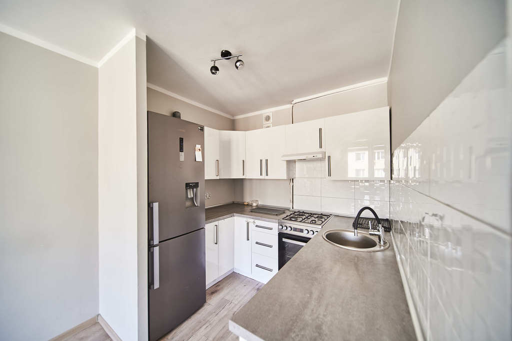 Kuchnia: Otwarta na salon, umeblowana wraz ze sprzętem AGD (lodówka, zmywarka, kuchenka)
