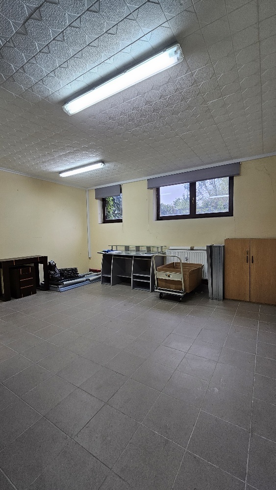 Lokal usługowy na cichą działalność biurową, idealny na pracownię projektową, biuro. Dostęp do lokalu z parteru windą lub schodami w dół. Na chwilę obecną częściowo podzielony ściankami działowymi, można zrobić open space, dodatkowo dwie łazienki. Stan do wykończenia. W budynku doprowadzony światłowód. Budynek na terenie zamkniętym.